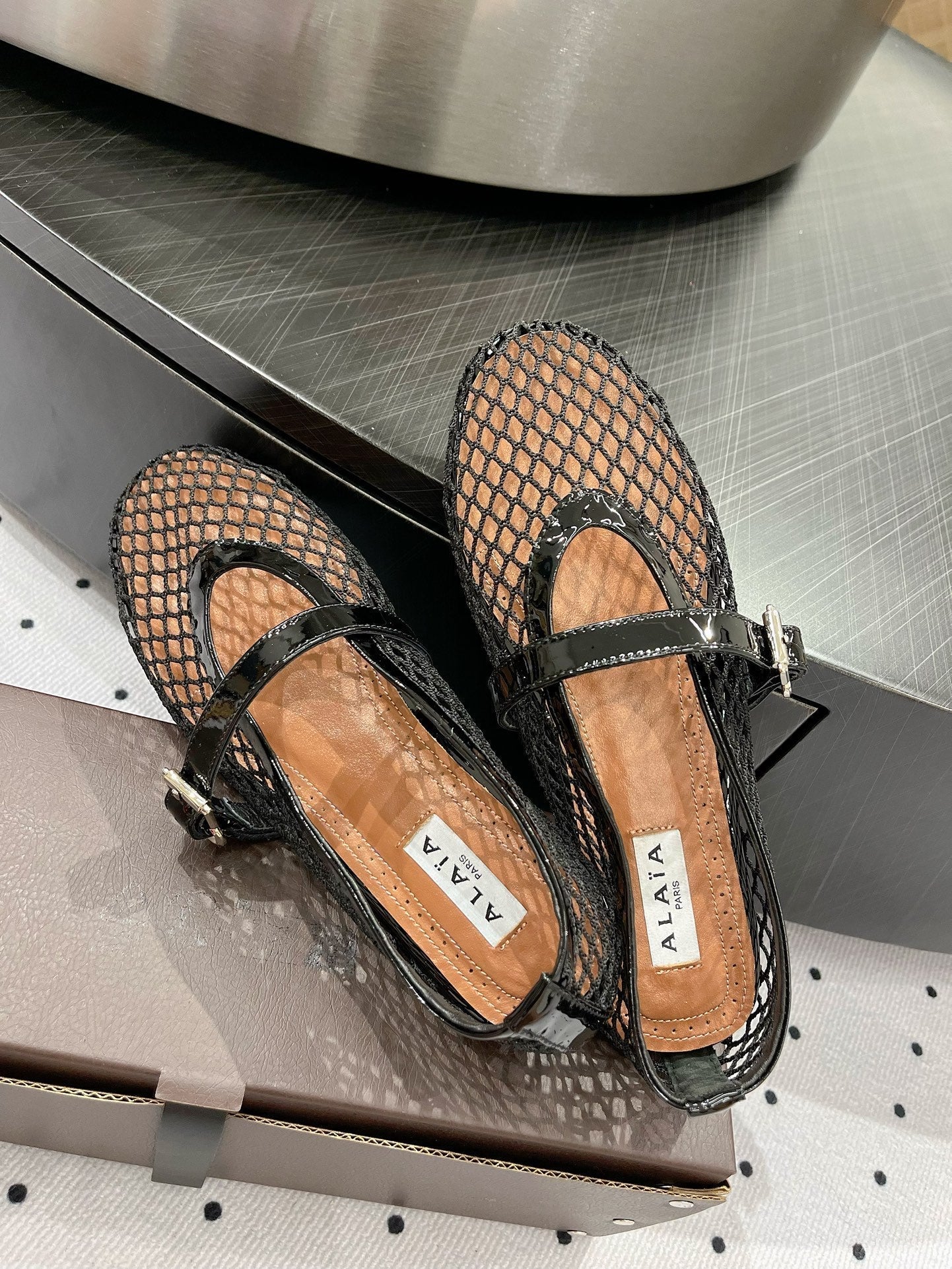 alaia ballet flat fishnet black lambskin