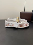 ALAIA BALLET FLATS IN WHITE MESH FISHNET WITH GOLD HARDWARE