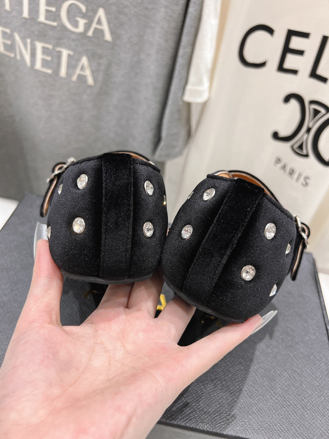 Alaila Ballet Flats In Black Velvet With Rhinestones 972000