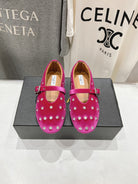 Alaila Ballet Flats In Deep Pink Velvet With Rhinestones 972002