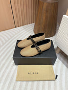 alaia ballet flat beige paper straw