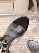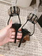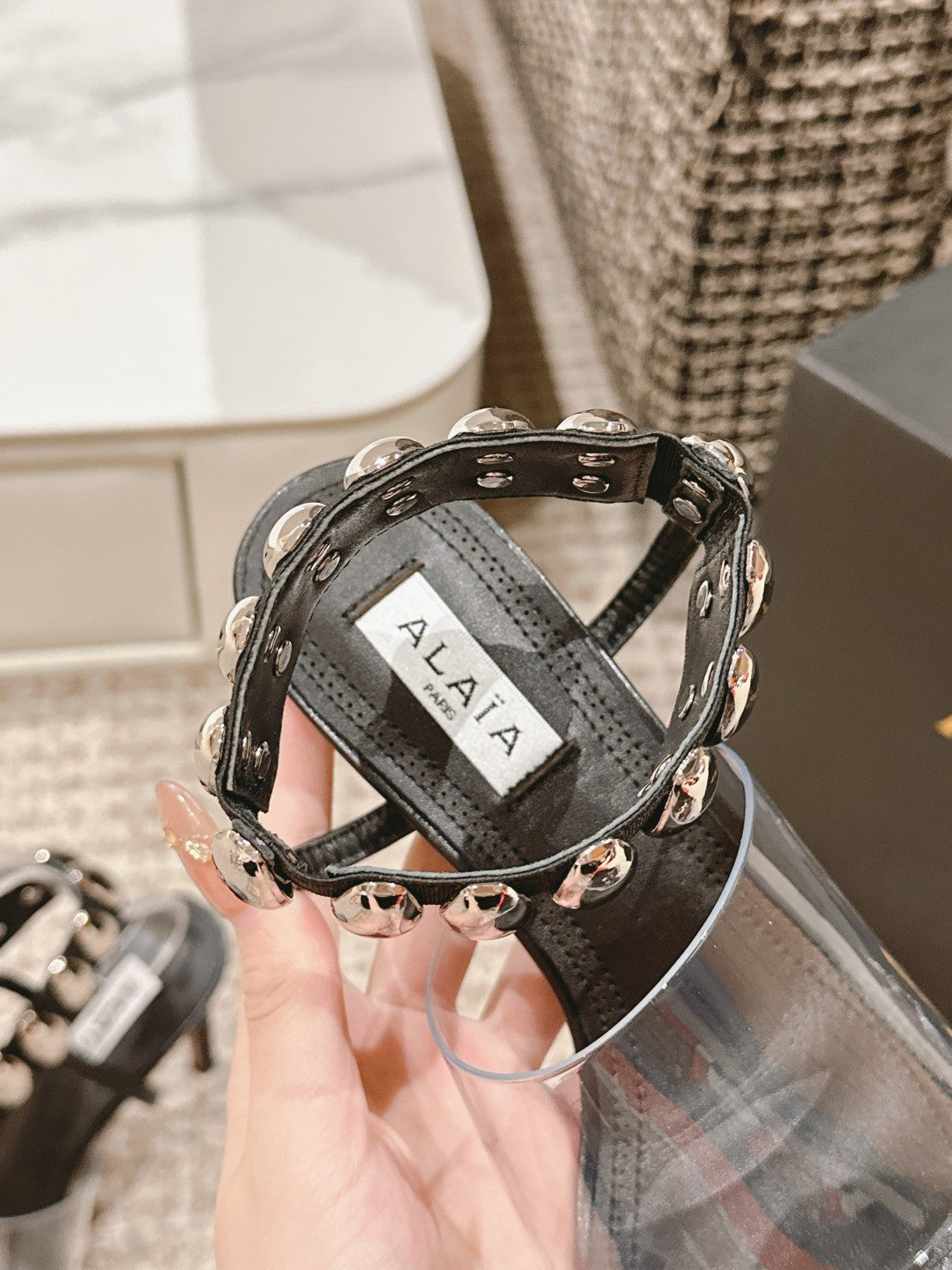 ALAIA HIGH SANDAL IN BLACK CALFSKN AND FILM WITH CRYSTAL