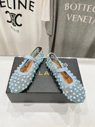 ALAIA PEARL MARY JANE SHOES IN LIGHT BLUE MESH AND CALFSKIN