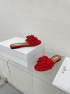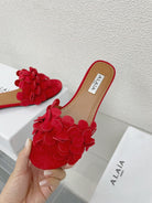 alaia sandal mule flower red suede