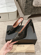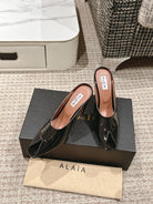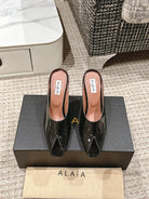 ALAIA SPIKE JEWEL MULES IN BLACK GLOSSY CALFSKIN