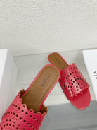 ALAIA VIENNE FLAT MULES IN CHERRY RED LAMBSKIN
