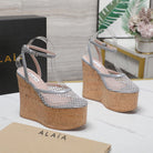 ALAIA WEDGE SANDAL IN LIGHT GREY MESH AND BEIGE RUBBER