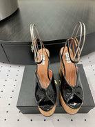 Alaila Wedge Sandals 135mm In Black Glossy Lambskin 954897