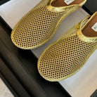 flat mule fishnet gold metalic lambskin