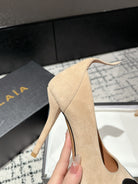 ALAIA HIGH PUMPS 10CM IN BEIGE SUEDE MIX BLACK CALFSKIN
