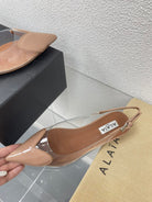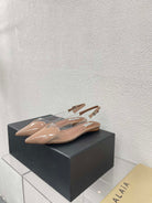 ALAIA LE COEUR FLAT SLINGBACKS IN BEIGE PATENT LAMBSKIN