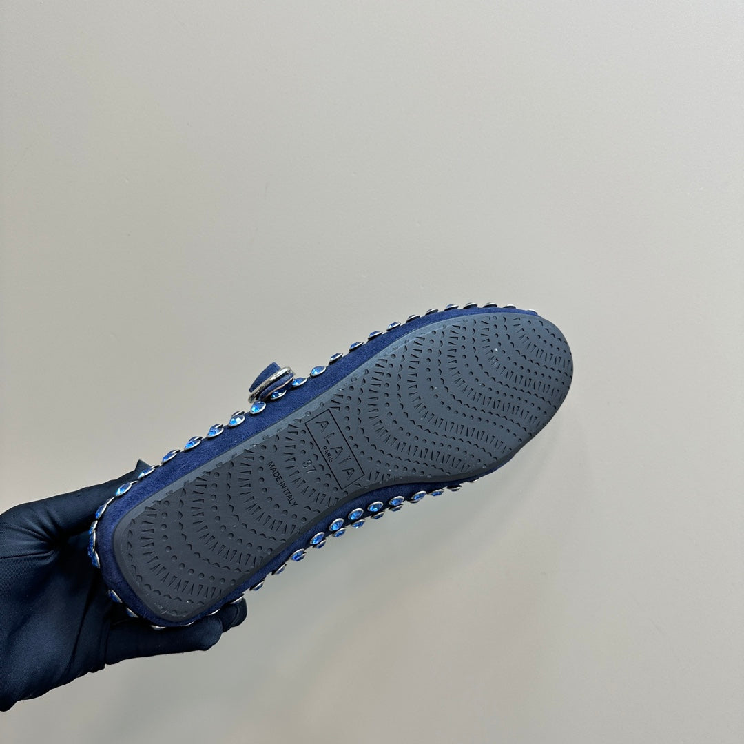 Alaia Strass Suede Ballet Flats In Dark Blue 999320