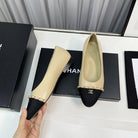 ballet flat beige lambskin black leather chain grosgrain