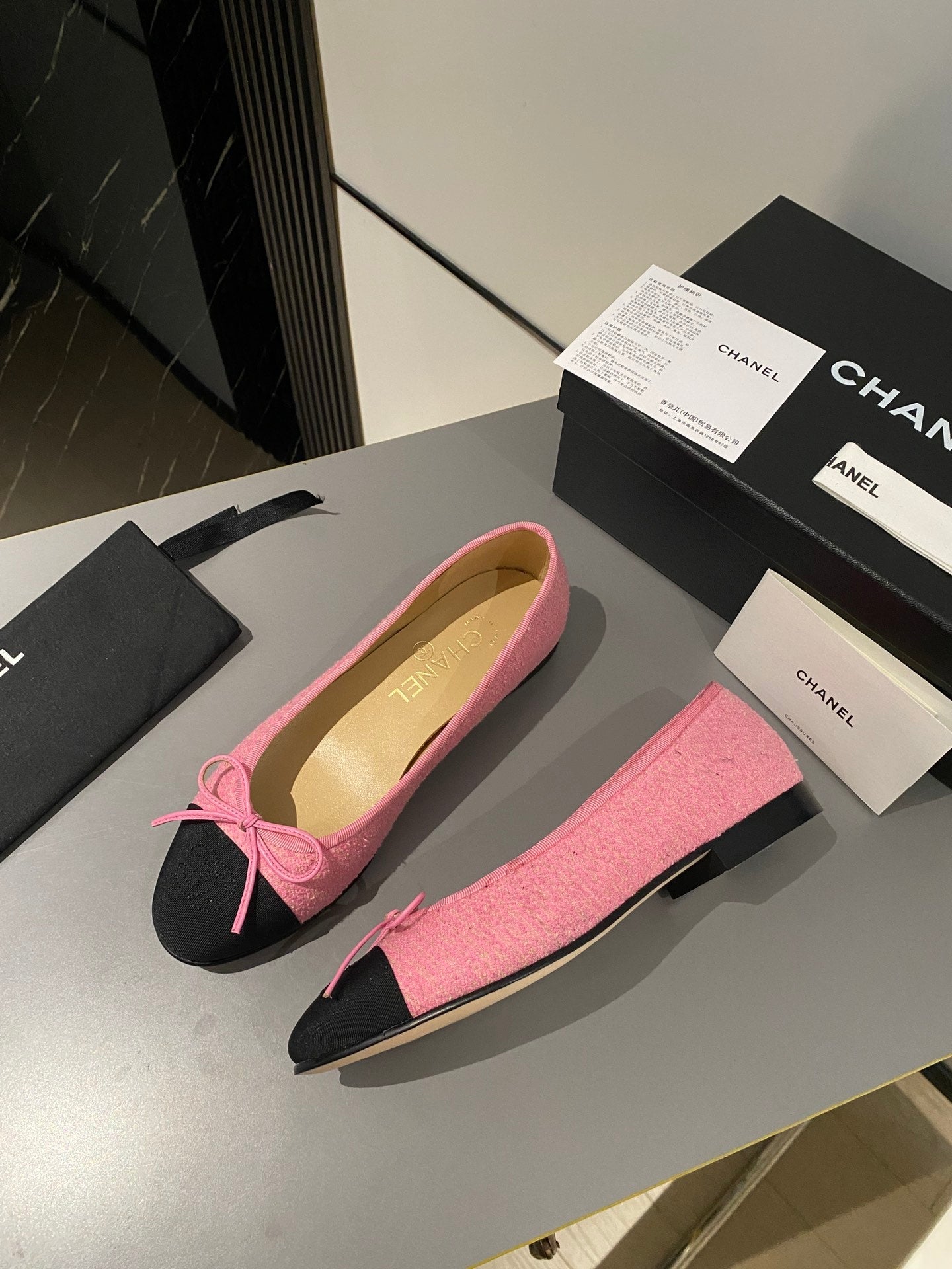 ballet flat pink embroidered fabric black grosgrain