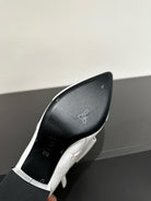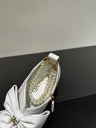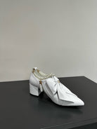 CCC Pointed Toe High Heels White Bow Tie Cowhide