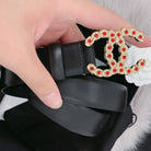 CC WOMEN'S BELT 3.0CM LEATHER BLACK BUCKLE GOLD RED DIAMOND
