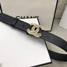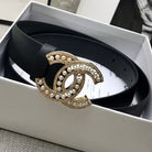CC WOMEN'S BELT 30MM LEATHER BLACK BUCKLE GOLD PEARL DIAMOND