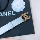 CHANEL BELT 3CM IN COLUMBIA BLUE LAMBSKIN WITH CRYSTAL GOLD HARDWARE