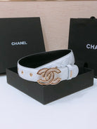 CHANEL BELT 3CM IN WHITE EMBROIDERED LAMBSKIN GOLD HARDWARE