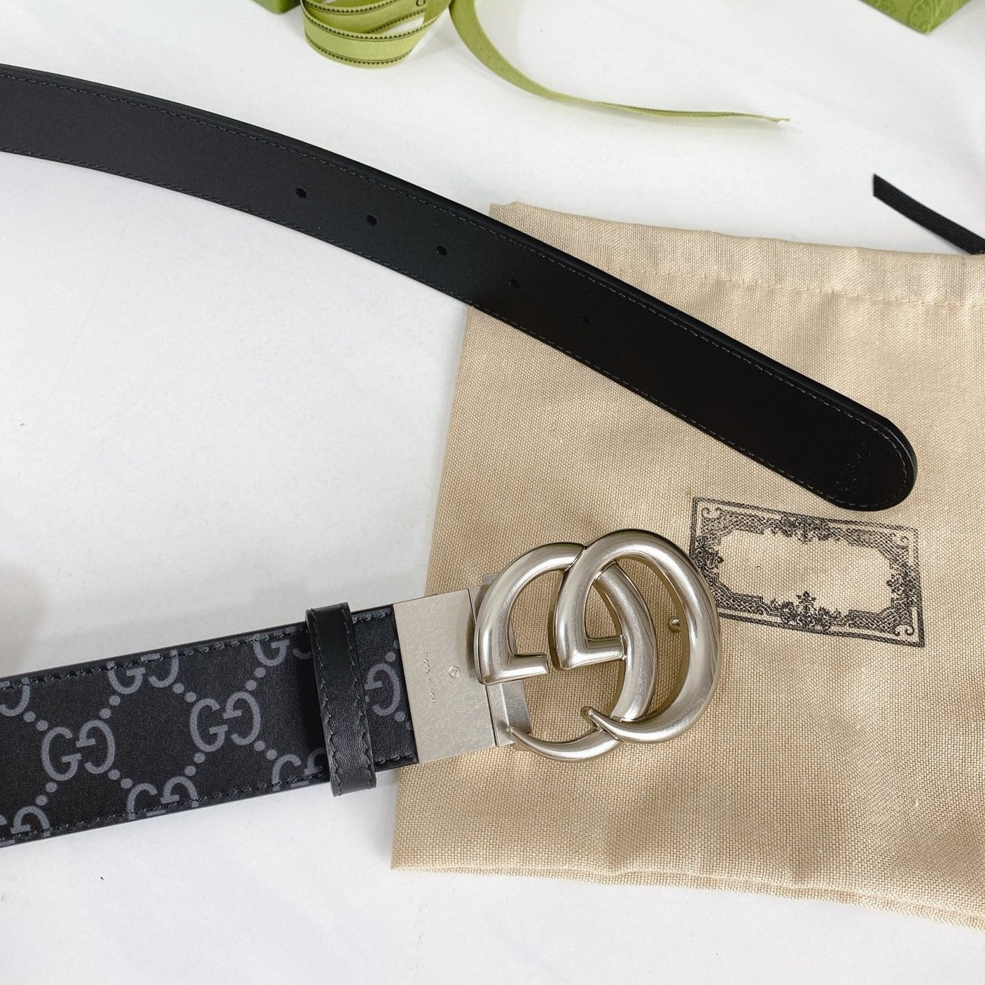 DOUBLE G SILVER BUCKLE 38MM BLACK LEATHER GREY MONOGRAM