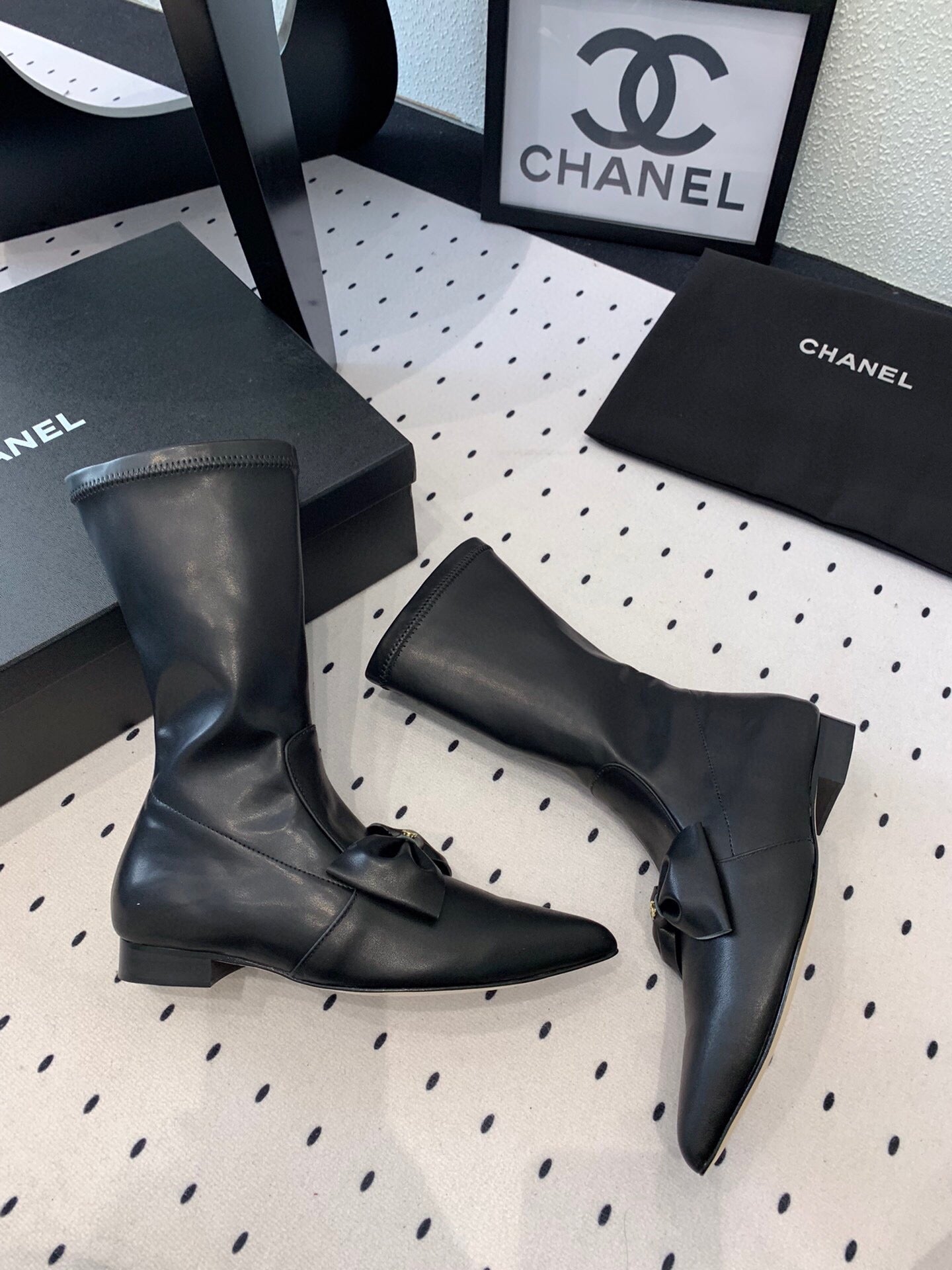 CC 25 Bow-knot Short Boot Black Sheepskin 514063