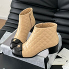 CC SHORT BOOTS 65 MM IN SEPIA BEIGE MIX BLACK QUILTED PATTERN LAMBSKIN