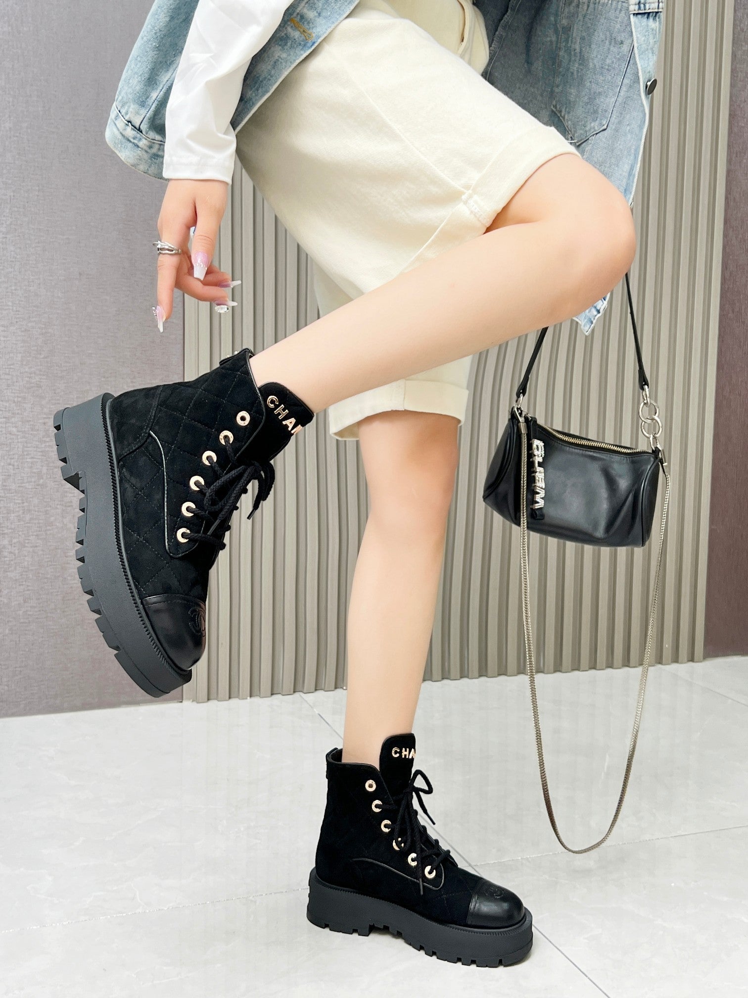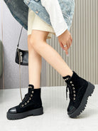 CC Combat Boots In Black Quilted Suede And Lambskin 944576