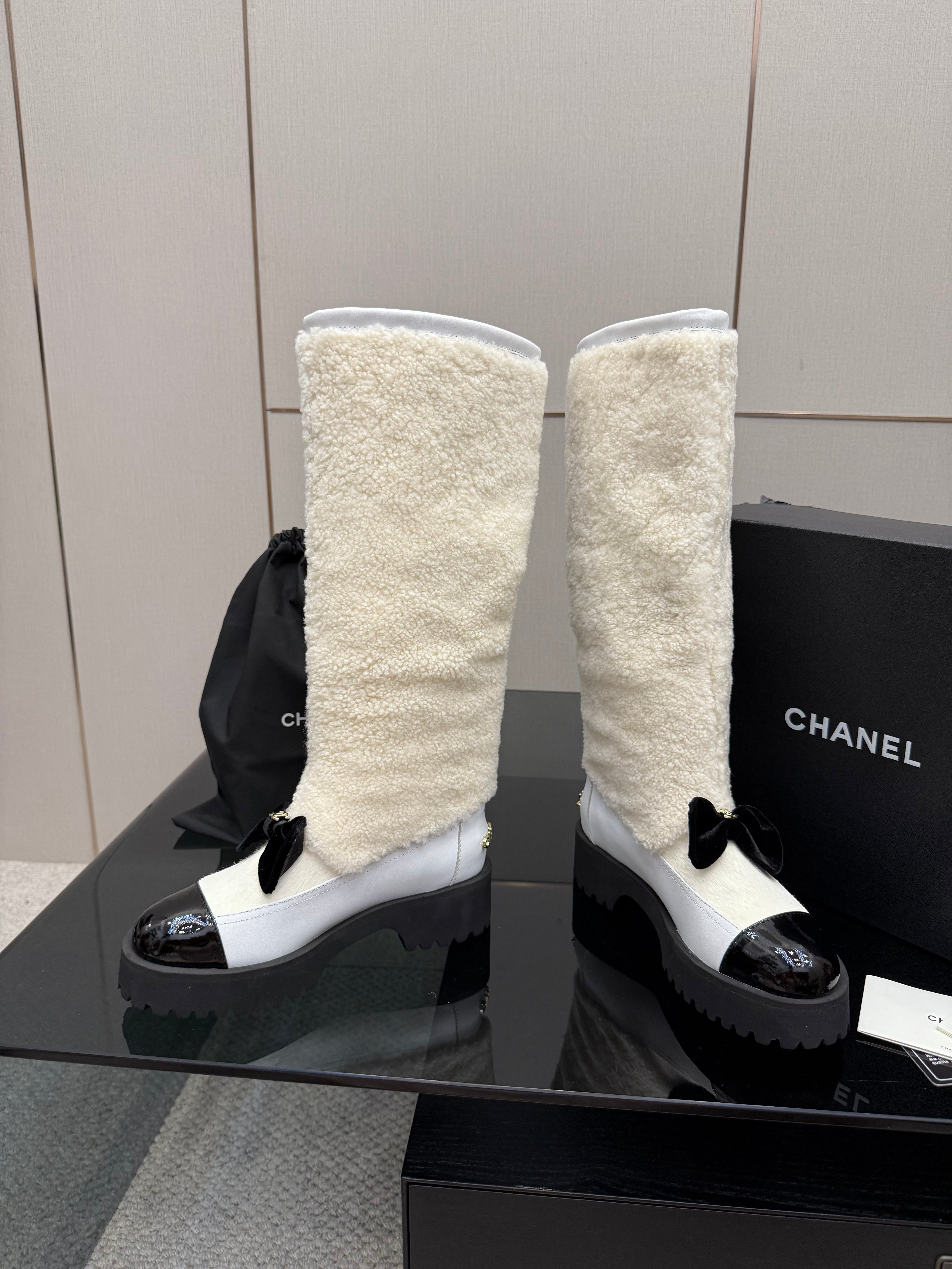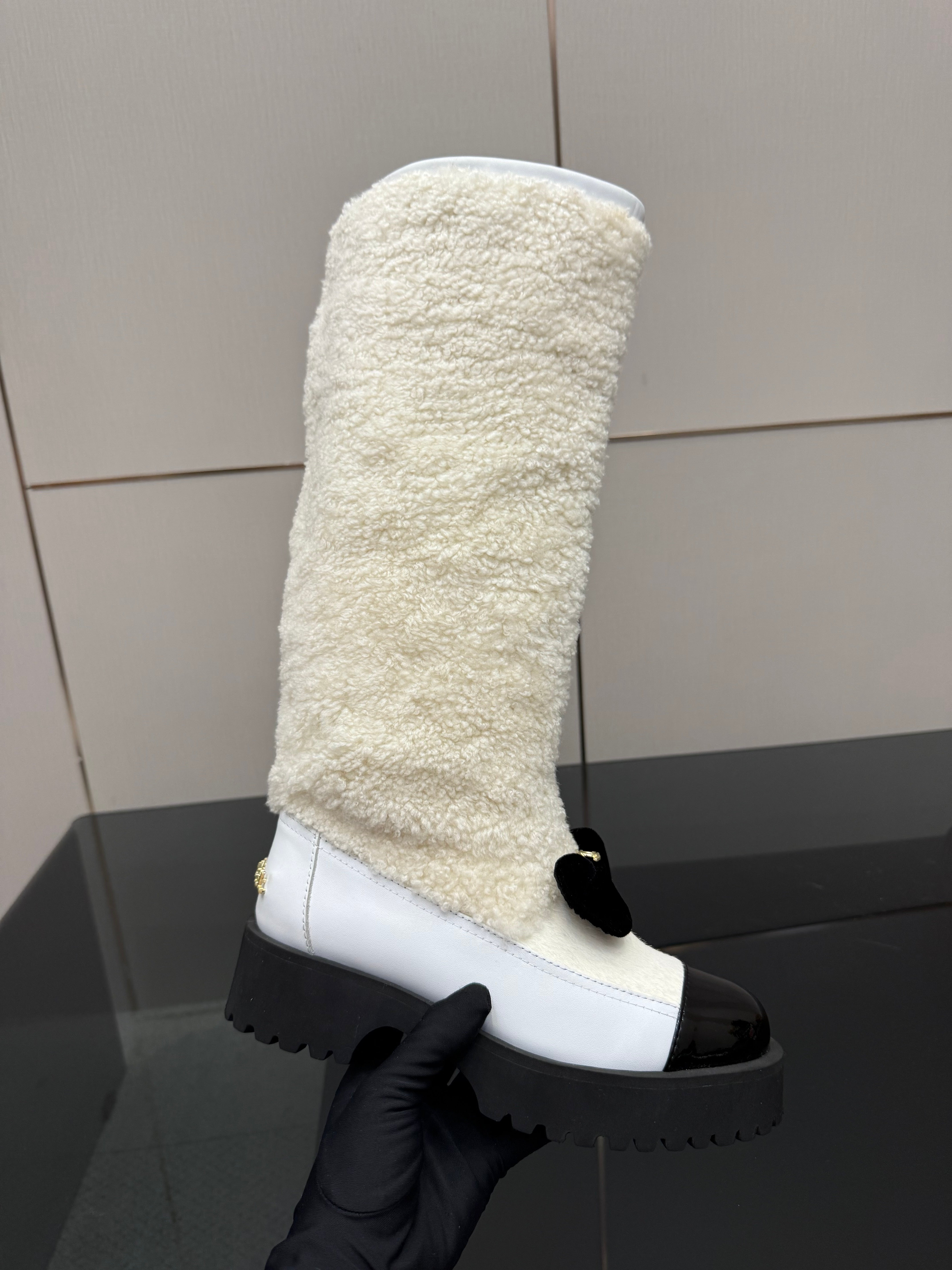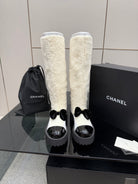 CC knee-high boots white black sheepskin and wool 532190