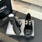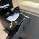CC OXFORD SHOES IN BLACK SUEDE AND CALFSKIN WITH PEARL CHAIN