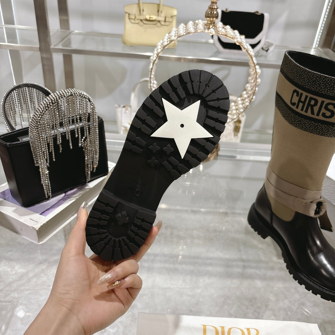 CD D-Major Boot Taupe Mix Black Calfskin And Denim Fabric