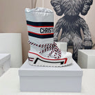 CD Platform Snow Boots White Navy Blue Cowhide Nylon Fabric 539652