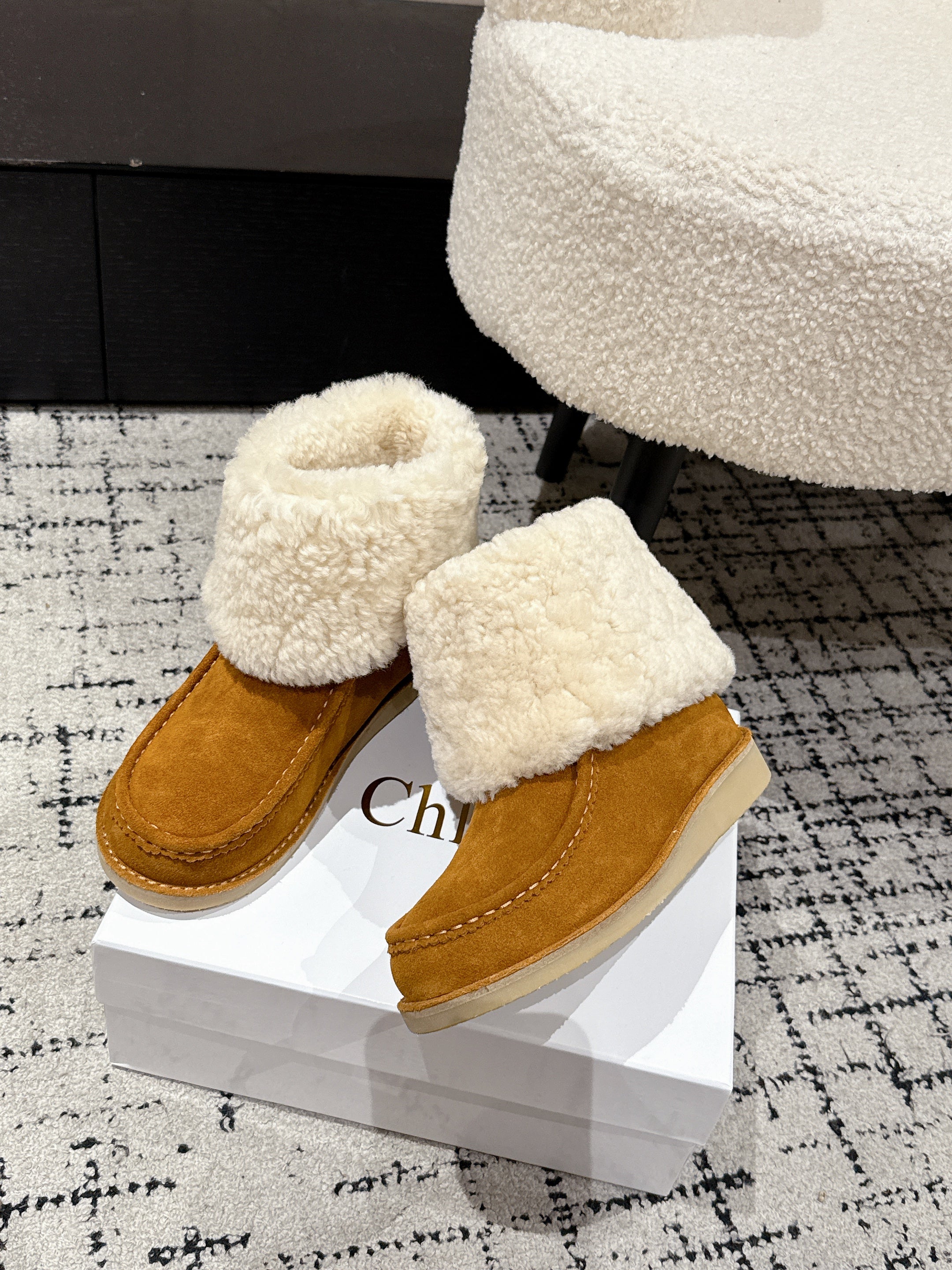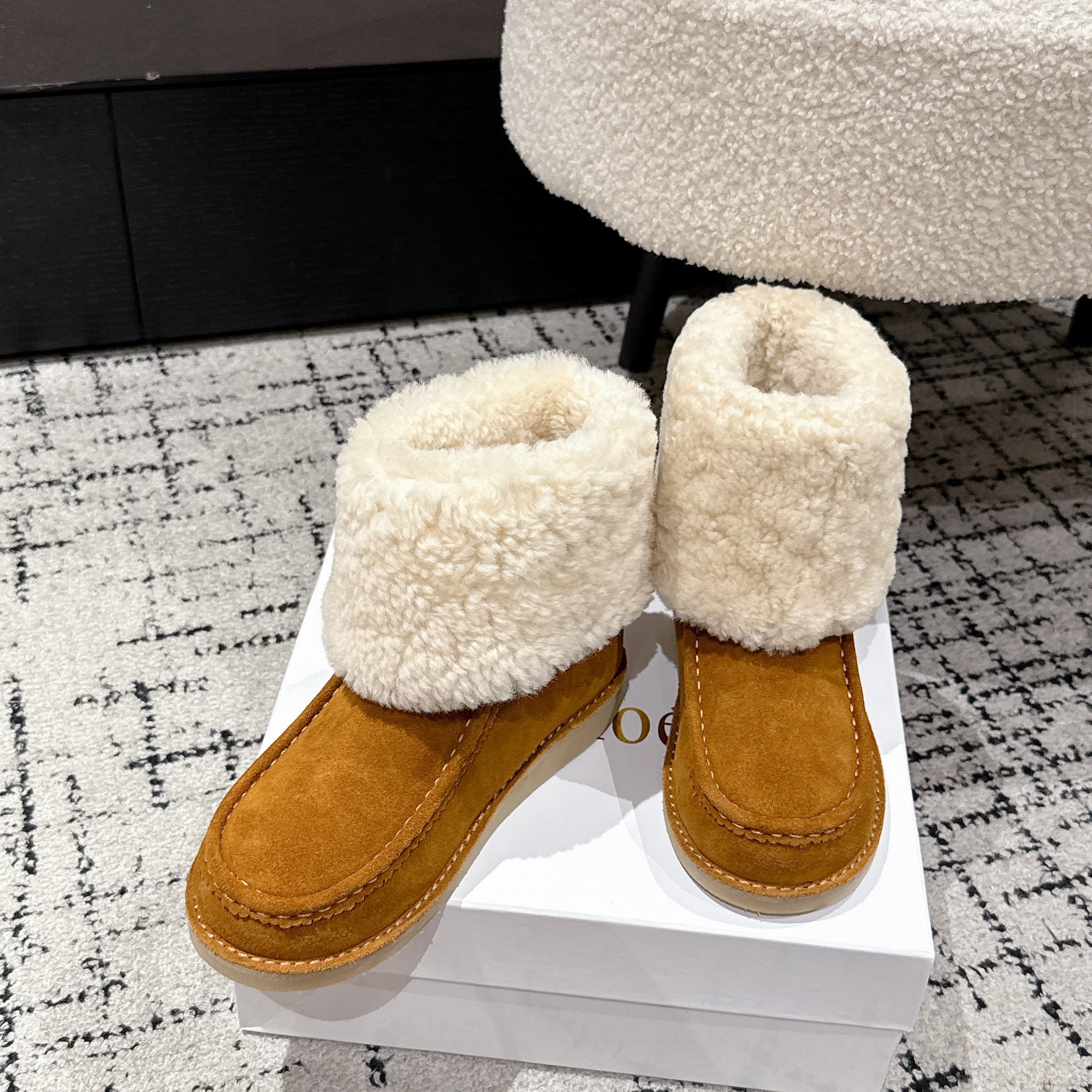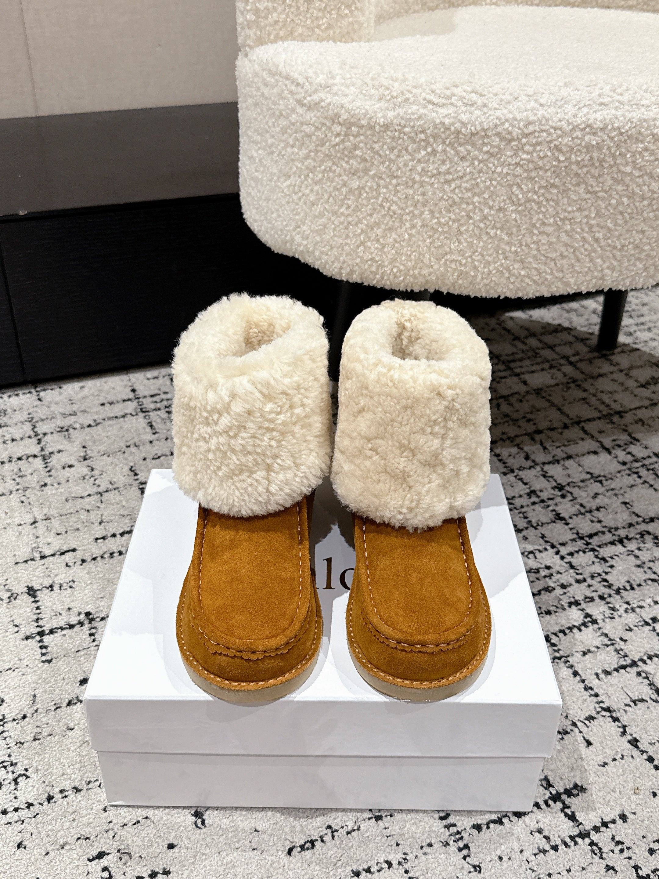Chloe Snow Boots Tan Cream Suede Wool 514334