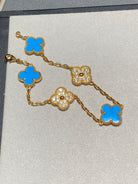 CLOVER 5 MOTIF TURQUOISE DIAMOND GOLD BRACELET