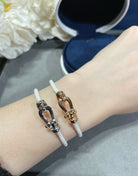 For LOVE bracelet, the usual bracelet sizing rules differ slightly due to the design of the bracelet. We recommends adding one centimeter for a tight fit and two centimeters for a looser fit.