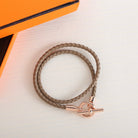 • Braided double tour bracelet in Swift calfskin with palladium-plated Glenan closure