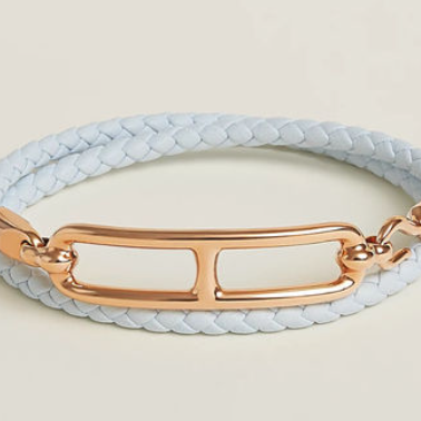 - Braided double tour bracelet in Swift calfskin with palladium-plated Glenan closure