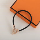 - Braided double tour bracelet in Swift calfskin with palladium-plated Glenan closure