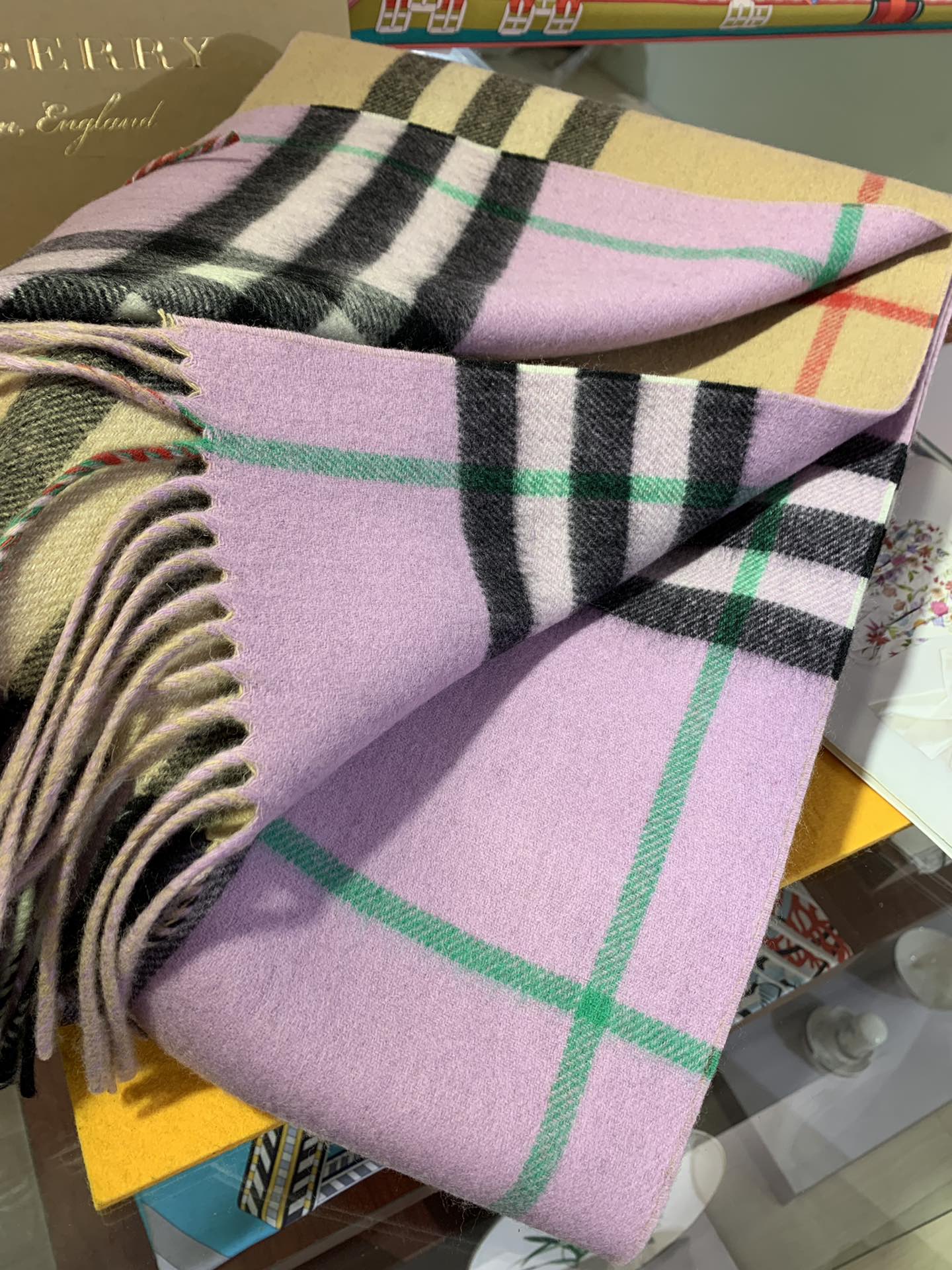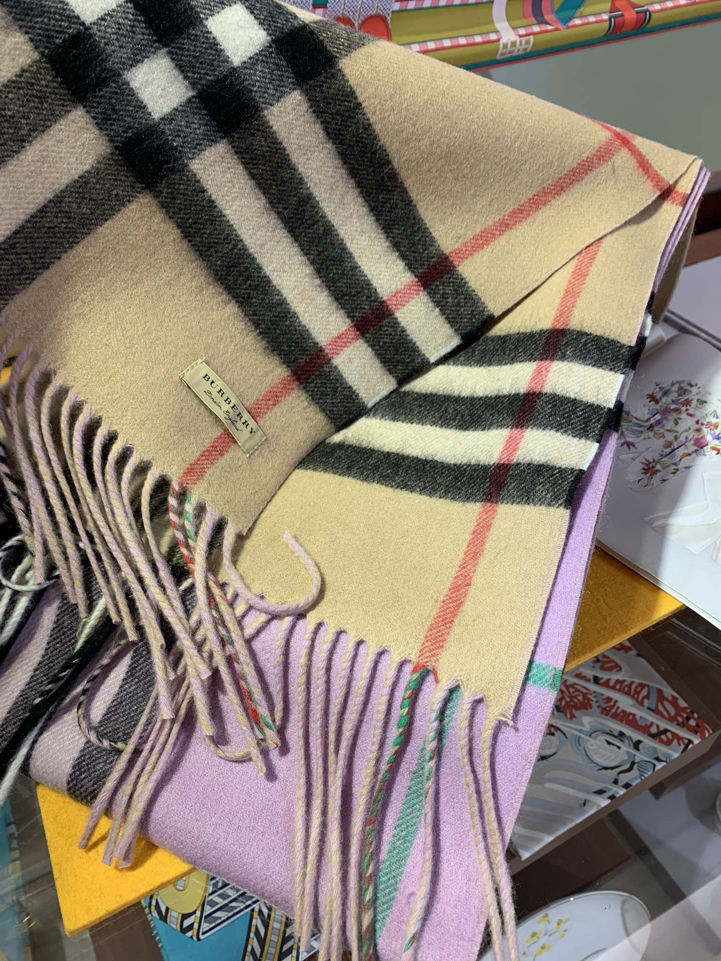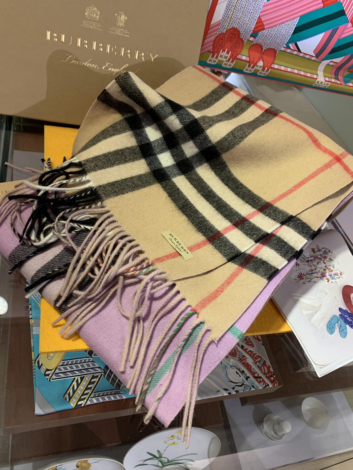 LONG SCARF 250 CM IN LIGHT PINK AND BEIGE CASHMERE 410471