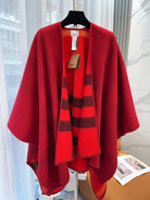 WOOL CAPE 140 CM CHERRY RED AND BLACK 394534