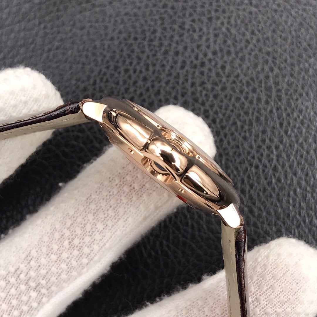 BALLON BLANC DE CARTIER QUARTZ ROSE GOLD BROWN LEATHER