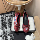 CC Ballet Flats Red Silk Flowers And Lambskin