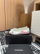 CC Ballet Flats White Silk Flowers And Lambskin