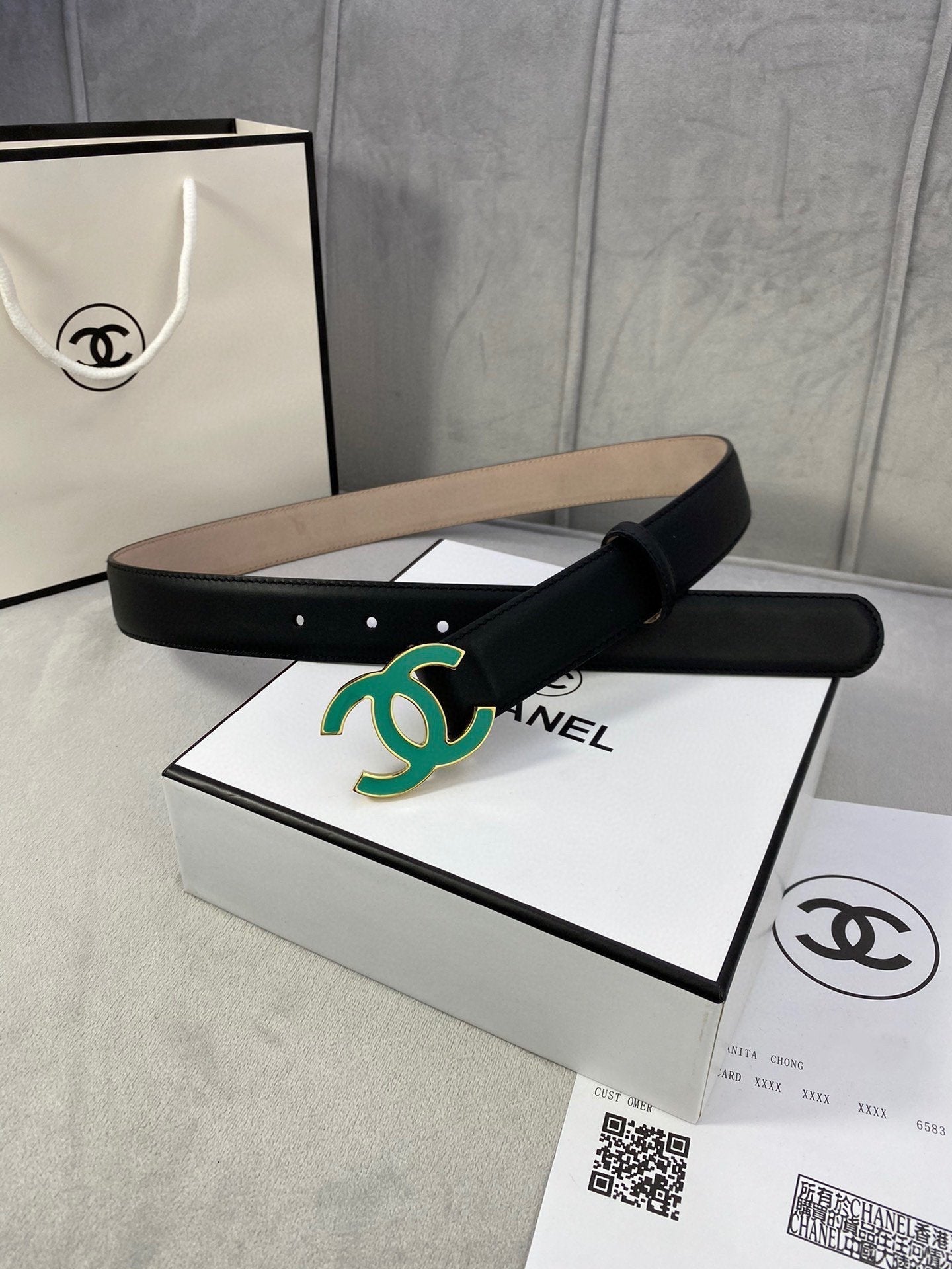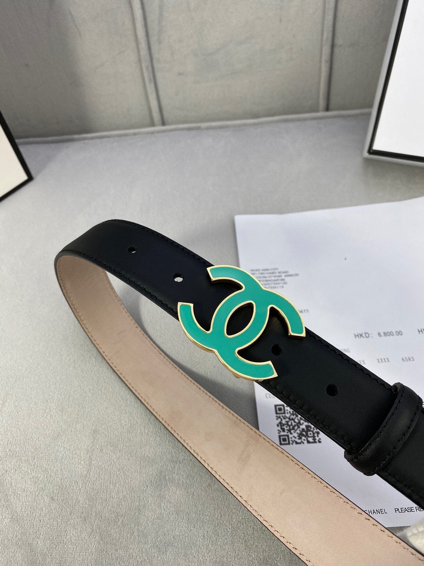 CC BELT 3.0CM BUCKLE BLUE LEATHER BLACK