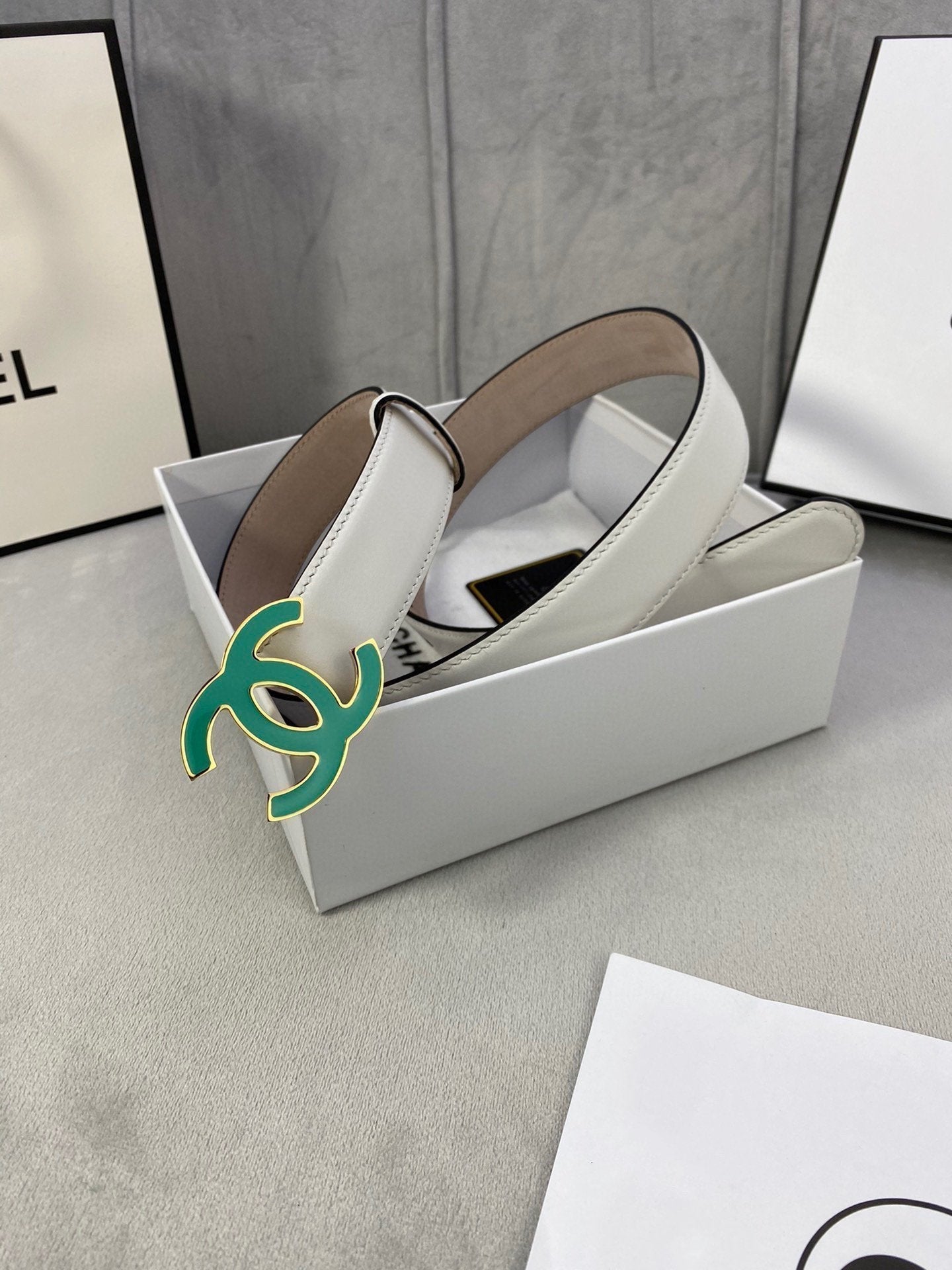 CC BELT 3.0CM BUCKLE BLUE LEATHER WHITE