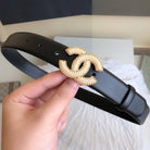 CC BELT 30MM BUCKLE GOLD PEARL LEATHER BLACK