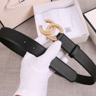 CC WOMEN'S BELT 3.0CM BUCKLE BLACK PEARL LEATHER