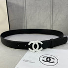 CC WOMEN'S BELT 3.0CM LEATHER EPSOM BLACK BUCKLE SILVER