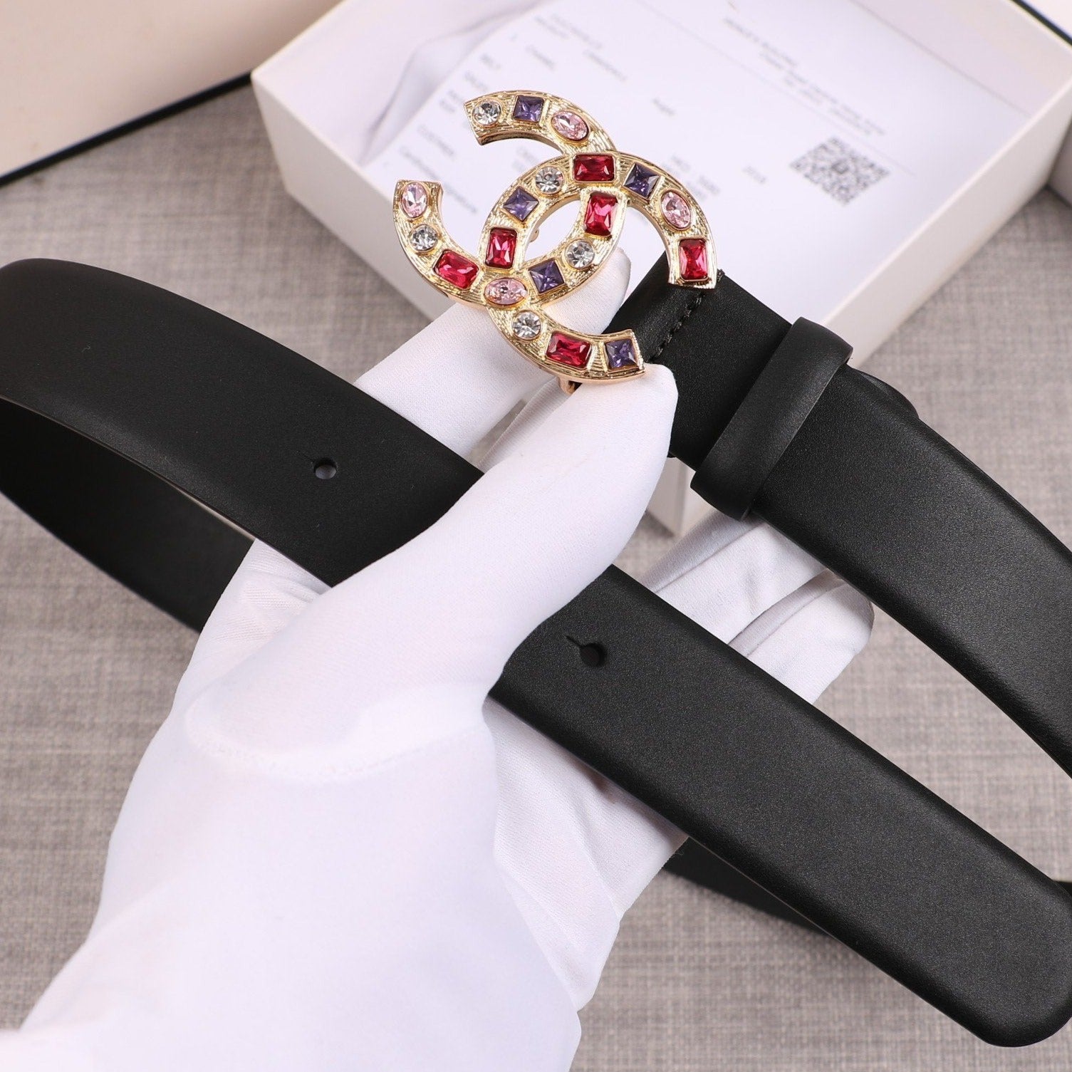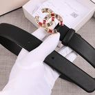 CC WOMEN'S BELT BUCKLE GOLD BLACK LEATHER 3.0CM