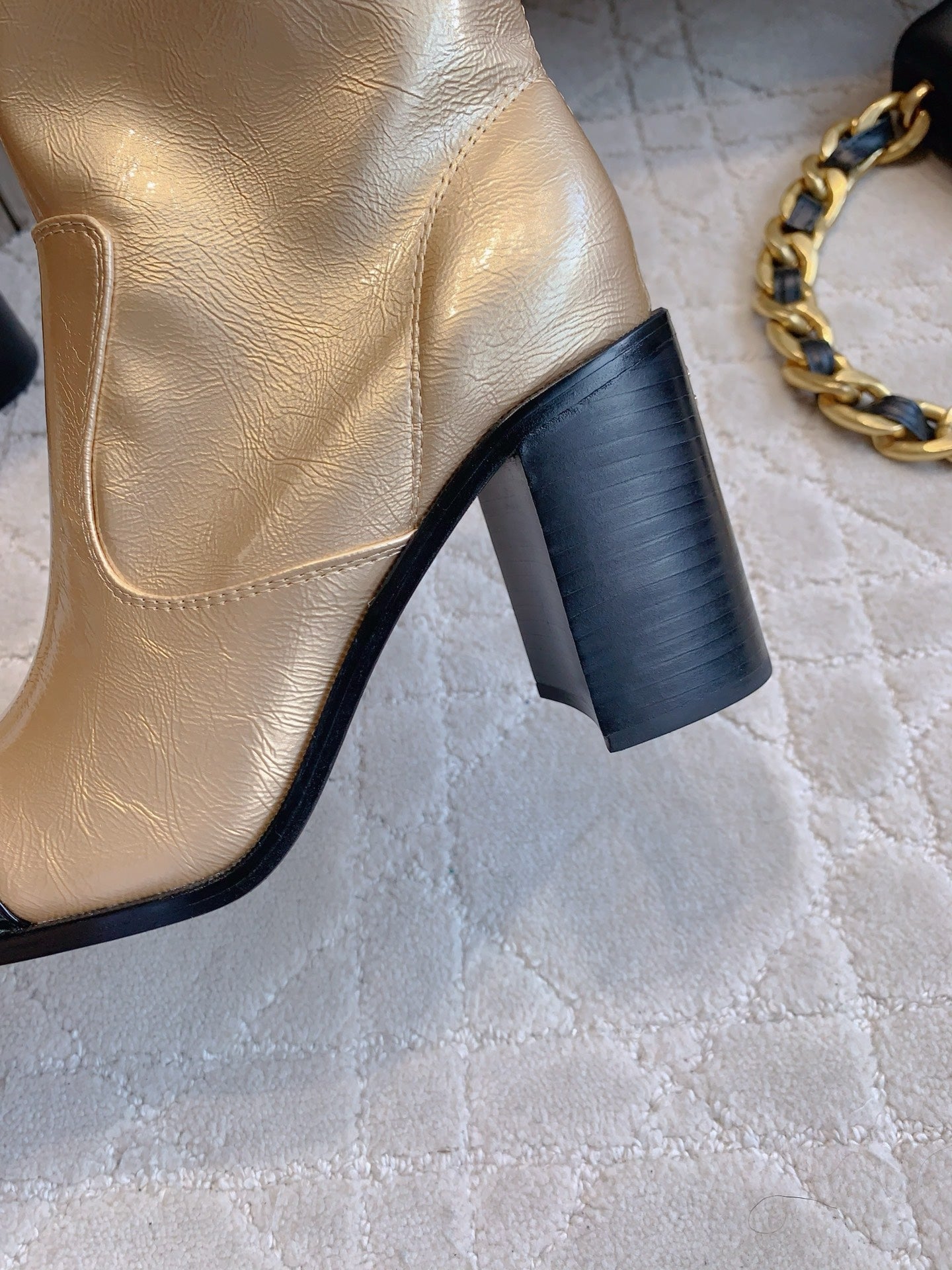 CC 25 Heeled Short Boot Light Gold mix Black Patent Leather 516677