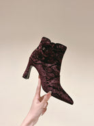 CC Ankle Boots 85mm Brown Red Rough Velvet Fabric